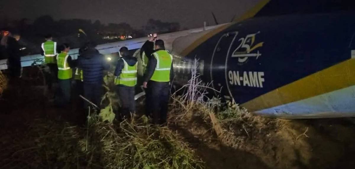 നേപ്പാളിലെ ഭദ്രാപൂരിൽ ലാൻഡ് ചെയ്യുന്നതിനിടെ വിമാനം റണ്‍വേയില്‍ നിന്ന് തെന്നിമാറി; അപകടം ഒഴിവായത് തലനാരിഴയ്ക്ക്