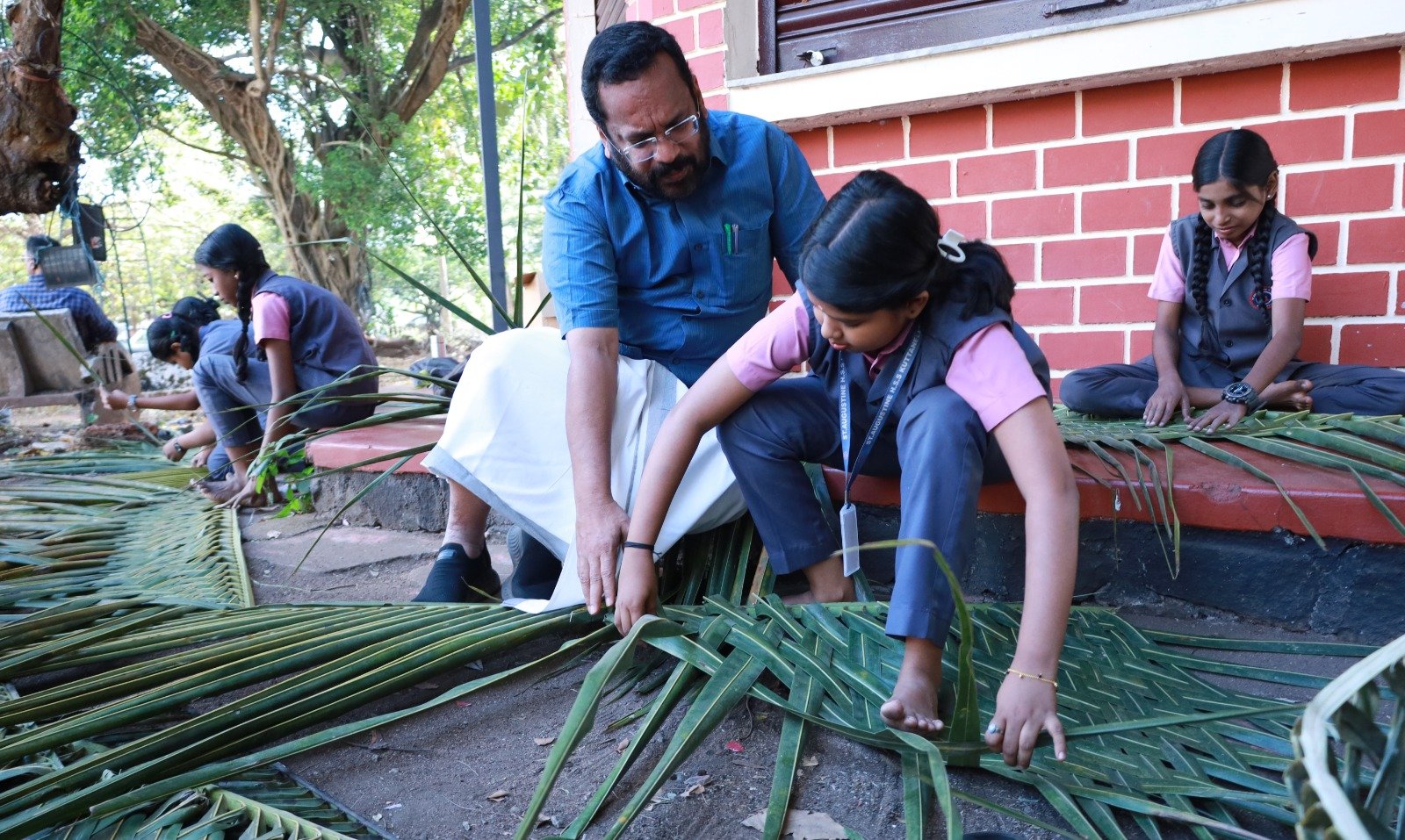 HomeFramesപാഠം ഒന്ന് ഗ്രീൻ പ്രോട്ടോക്കോൾ _ സംസ്ഥാന സ്ക്കൂള് കലോത്സവത്തിന്റെ ഭാഗമായി കുട്ടനെല്ലൂര് സെന്റ് അഗസ്റ്റിൻ സ്കൂളിലെ കുട്ടികള് ഗ്രീൻ പ്രോട്ടോകോൾ കമ്മിറ്റിക്ക് വേണ്ടി കുട്ടയുണ്ടാക്കുന്നതിന് ഓലമെടയുമ്പോൾ പ്രോത്സാഹിപ്പിക്കുന്ന മന്ത്രി കെ രാജൻ; ഫോട്ടോ അനൂപ് കെ വേണു