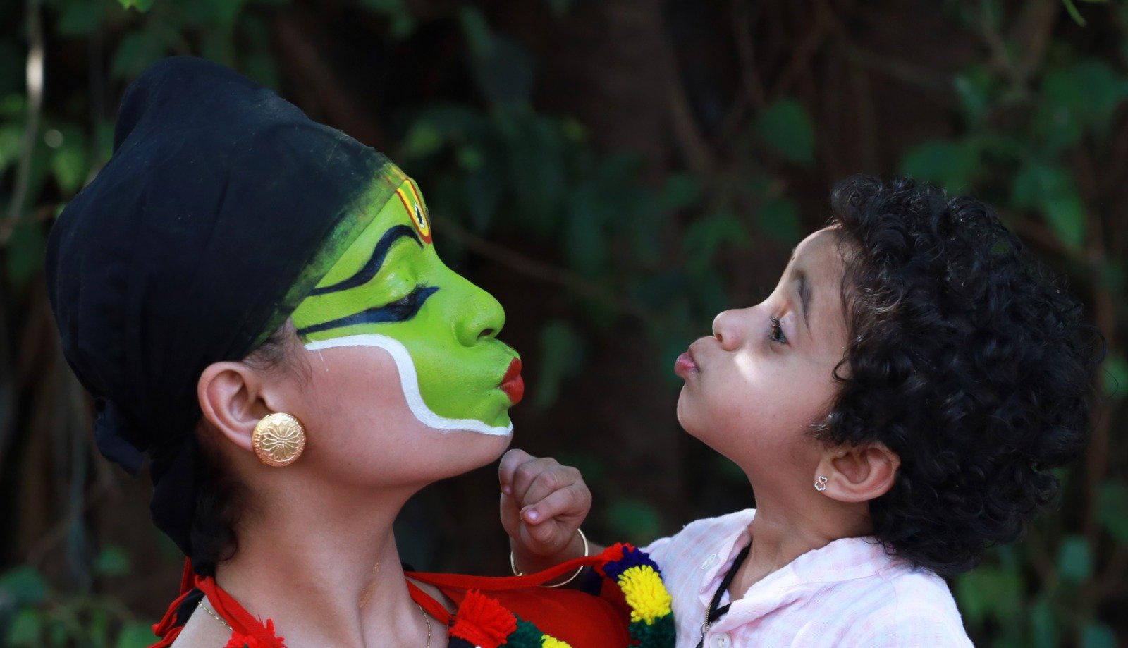 ചേച്ചിയ്ക്കൊരുമ്മ _ ഓട്ടൻ തുള്ളൽ മതസരത്തിൽ പങ്കെടുക്കാനെത്തിയ ദേവനന്ദ അനുജത്തി ദക്ഷയെ കളിപ്പിക്കുന്നു ഫോട്ടോ അനൂപ് കെ വേണു