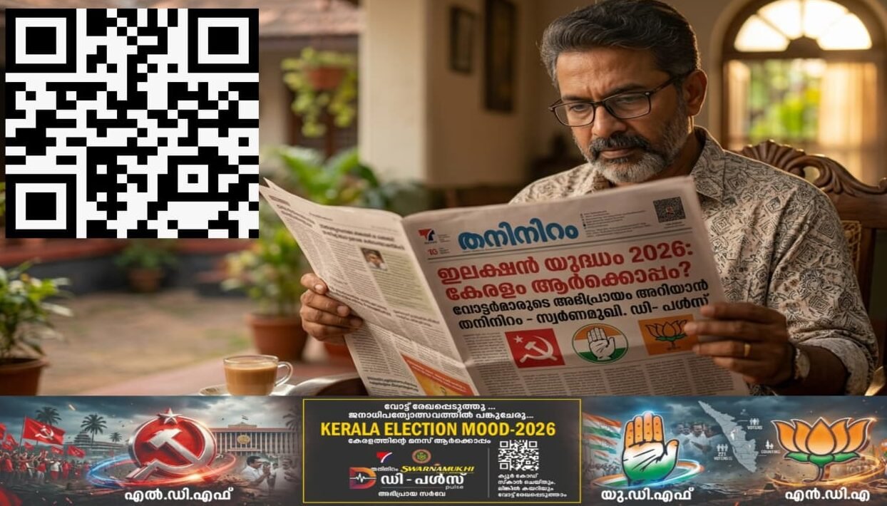 തൃശൂർ: കേരളം തെരഞ്ഞെടുപ്പിലേക്ക് നീങ്ങുമ്പോൾ ജനങ്ങളുടെ മനസിലിരിപ്പും നിലപാടും എന്താണെന്നറിയാൻ തനിനിറവും ജനങ്ങളിലേക്കെത്തുകയാണ്. പ്രമുഖ ജ്വല്ലറി ഗ്രൂപ്പായ സ്വർണമുഖി ഗോൾഡ് ആൻഡ് ഡയമണ്ട്സുമായി സഹകരിച്ചാണ് സർവേ. പ്രമുഖ കോർപ്പറേറ്റ് ഇവന്റ് ഗ്രൂപ്പായ ധ്യാക്കോ ഇന്റർനാഷണലിന്റെ വിപണി ഗവേഷണവും രാഷ്ട്രീയ വിശകലനങ്ങളും നടത്തുന്ന ഏജൻസിയായ, ഡി-പൾസ് ആണ് സർവേ നടത്തുന്നത്. നിർണായകമായ തെരഞ്ഞെടുപ്പിൽ ‘കേരളത്തിന്റെ മനസ് ആർക്കൊപ്പം?’ എന്നറിയാനുള്ള വിപുലമായ ഓൺലൈൻ സർവേയാണ്. സംസ്ഥാനത്തിന്റെ വിവിധ ജില്ലകളിൽ നിന്നുള്ള ജനങ്ങളുടെ അഭിപ്രായങ്ങൾ സമാഹരിച്ച് നിലവിലെ രാഷ്ട്രീയ സാഹചര്യവും ഭാവി പ്രവണതകളും വിലയിരുത്തുകയാണ് സർവേയുടെ ലക്ഷ്യം.ഓൺലൈൻ പ്ലാറ്റ്ഫോമുകൾ വഴി എല്ലാവർക്കും പങ്കെടുക്കാവുന്ന രീതിയിലാണ് സർവേ ഒരുക്കിയിരിക്കുന്നത്. രാഷ്ട്രീയ പിന്തുണ, സർക്കാരിന്റെ പ്രവർത്തനത്തെക്കുറിച്ചുള്ള വിലയിരുത്തൽ, സംസ്ഥാനത്തെ പ്രധാന പ്രശ്നങ്ങൾ എന്നിവ ഉൾപ്പെടെ വിവിധ വിഷയങ്ങളിൽ ജനാഭിപ്രായം ശേഖരിക്കും. യുവാക്കളുടെയും ആദ്യവോട്ടർമാരുടെയും പങ്കാളിത്തത്തിന് പ്രത്യേക പ്രാധാന്യം നൽകിയാണ് സർവേ. തനിനിറം ദിനപത്രത്തിലും, വെബ്സൈറ്റിലും, തനിനിറം ടിവിയിലും, യൂട്യൂബ്, ഫേസ്ബുക്ക്, വാട്സാപ് ചാനൽ തുടങ്ങി സമൂഹമാധ്യമ പ്ളാറ്റ് ഫോമുകളിലൂടെയും വോട്ട് രേഖപ്പെടുത്താനാവും. ക്യൂആർ കോഡ് സ്കാൻ ചെയ്തും ലിങ്കിലൂടെയും വോട്ട് ചെയ്യാം. ഒരാൾക്ക് ഒരു വോട്ട് മാത്രമേ രേഖപ്പെടുത്താൻ കഴിയൂ. ജനമനസ് അറിയാനുള്ള അഭിപ്രായ സർവേയിൽ പങ്കെടുക്കൂ…. ജനാധിപത്യമഹോൽസവത്തിൽ ഭാഗമാകൂ.